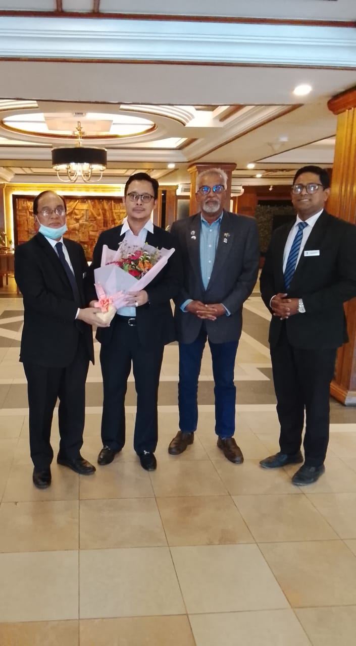 Mr. Monirul Alam Sarker, Senior F&B Manager Hotel Agrabad, presenting bouquet to His Excellency Mohd Shuhada Othman, the Malaysian High Commissione when he visited Hotel Agrabad recently.