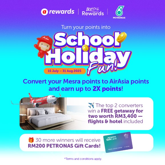 School holidays just got a whole lot more rewarding! AirAsia rewards and PETRONAS Mesra Rewards have joined forces to launch an exciting new campaign: Turn Your Points into School Holiday Fun!, happening from now to 31 August 2025. Whether you’re planning a family getaway or simply looking to maximise your loyalty points, this campaign offers members of both programmes the chance to unlock exclusive perks, bonus points, and incredible prizes.