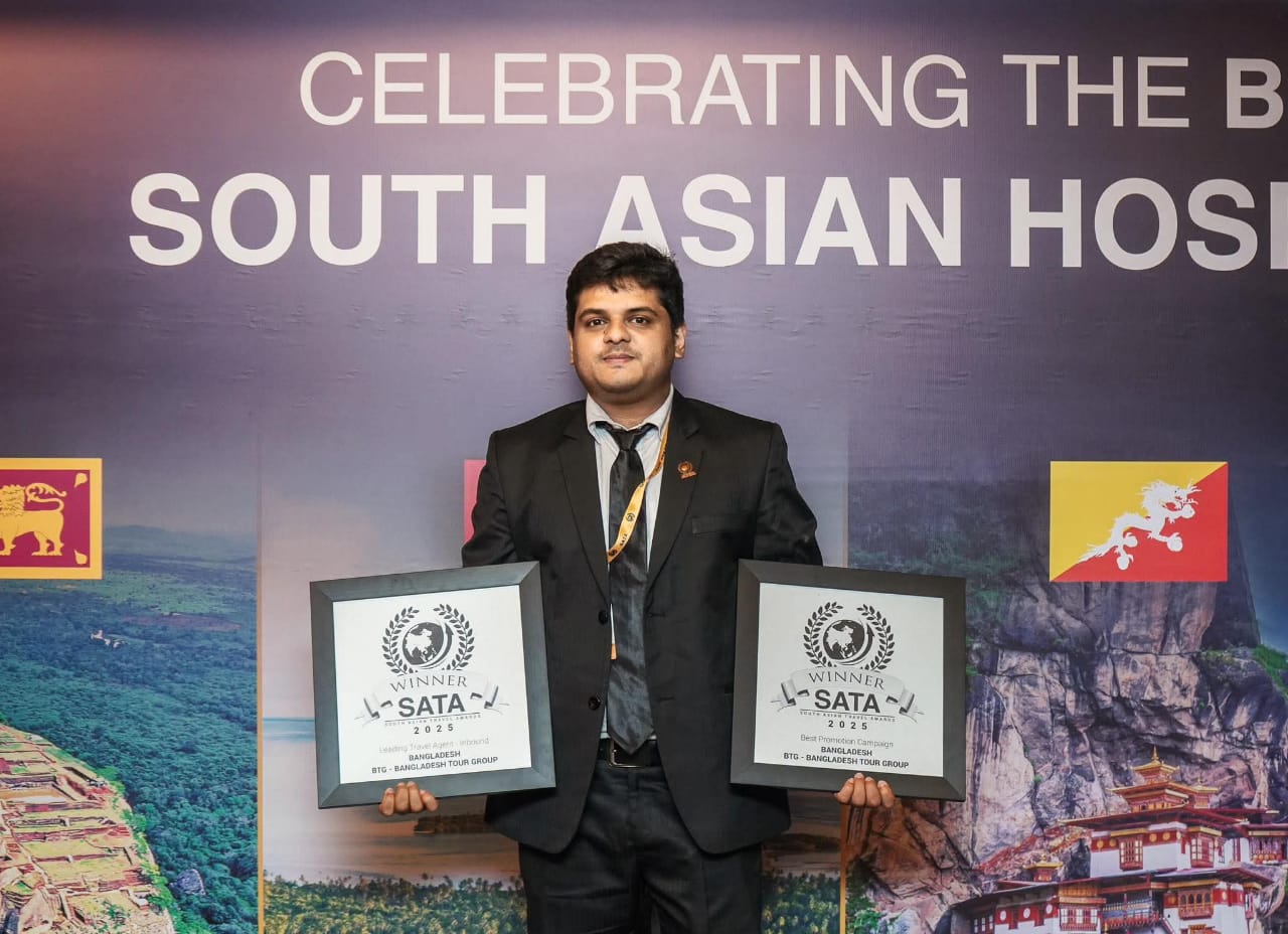 Bangladesh’s leading travel company, Bangladesh Tour Group – BTG, has once again brought pride to the nation by winning two prestigious categories at the South Asian Travel Awards – SATA 2025, held on 20th September in Colombo, Sri Lanka.