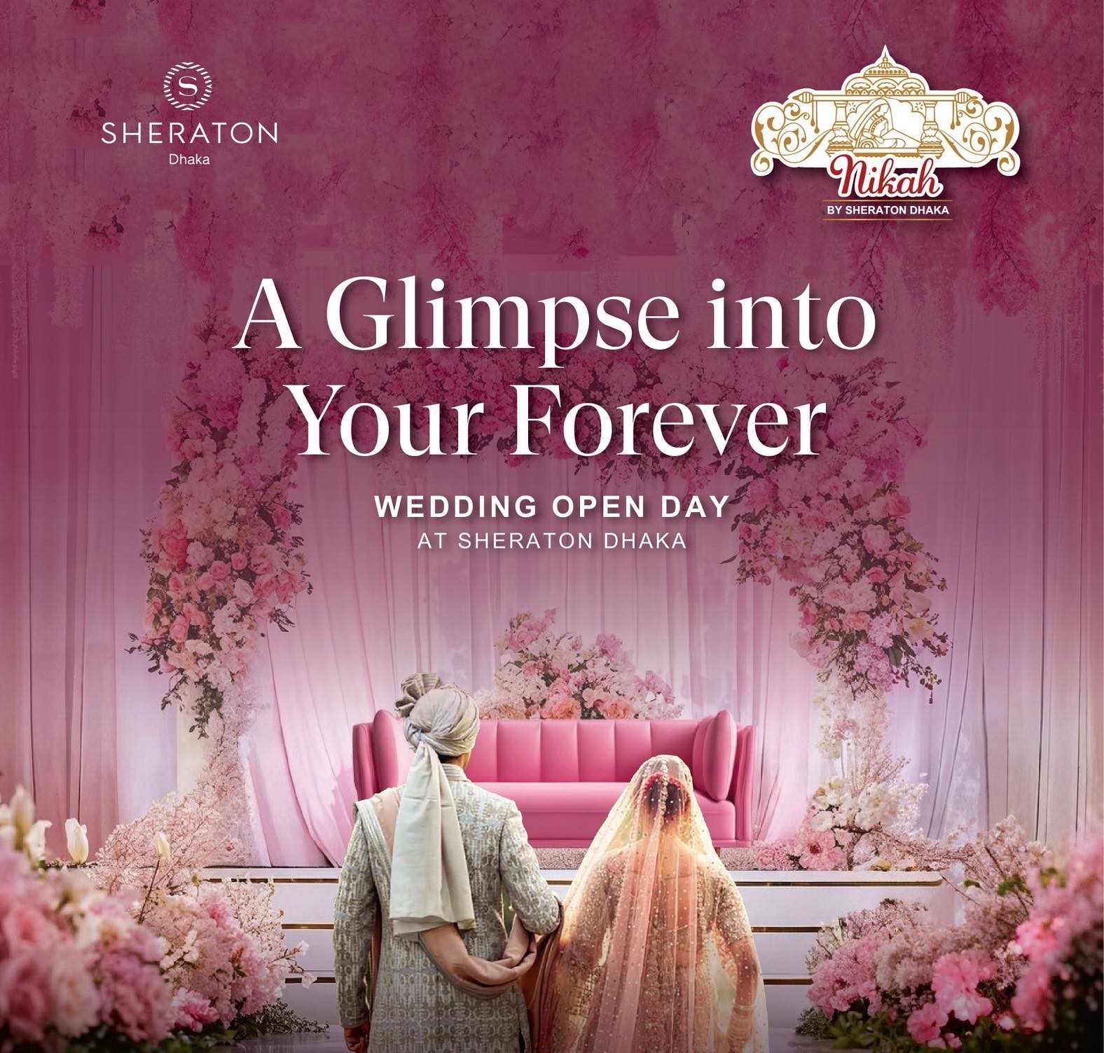 At Sheraton Dhaka’s Wedding Open Day, couples will be welcomed with a signature drink, guided through our elegant venues, explore premier wedding partner stalls with exclusive offers, and receive personalized consultations on dates, budgets, and packages through our wedding specialists—complemented by tea, coffee, light bites with soft romantic music playing in the background. Each guest will depart with a personalized goodbye kit with the opportunity to arrange a private tour & planning consultation.